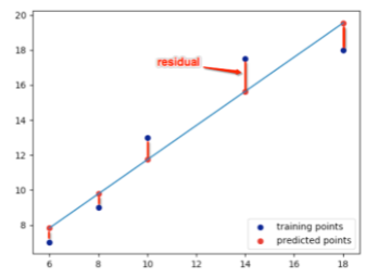 يتم الحصول على أفضل خط ملائم بتقليل البقايا فالمتبقي هو المسافة بين Y الفعلي و Y المتوقع كما هو موضح في الشكل.