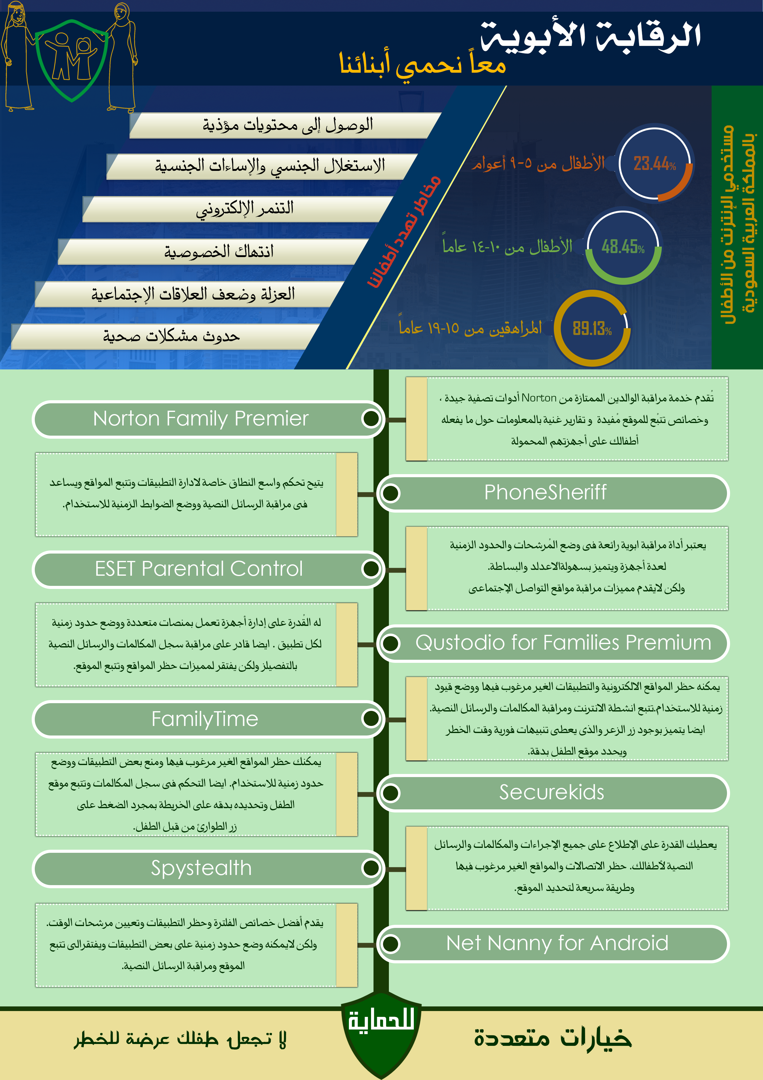 تصميم توعوي للمخاطر التي تهدد الأطفال من استخدام وسائل التكنولوجيا وعرض لأهم وسائل الرقابة الأبوية.