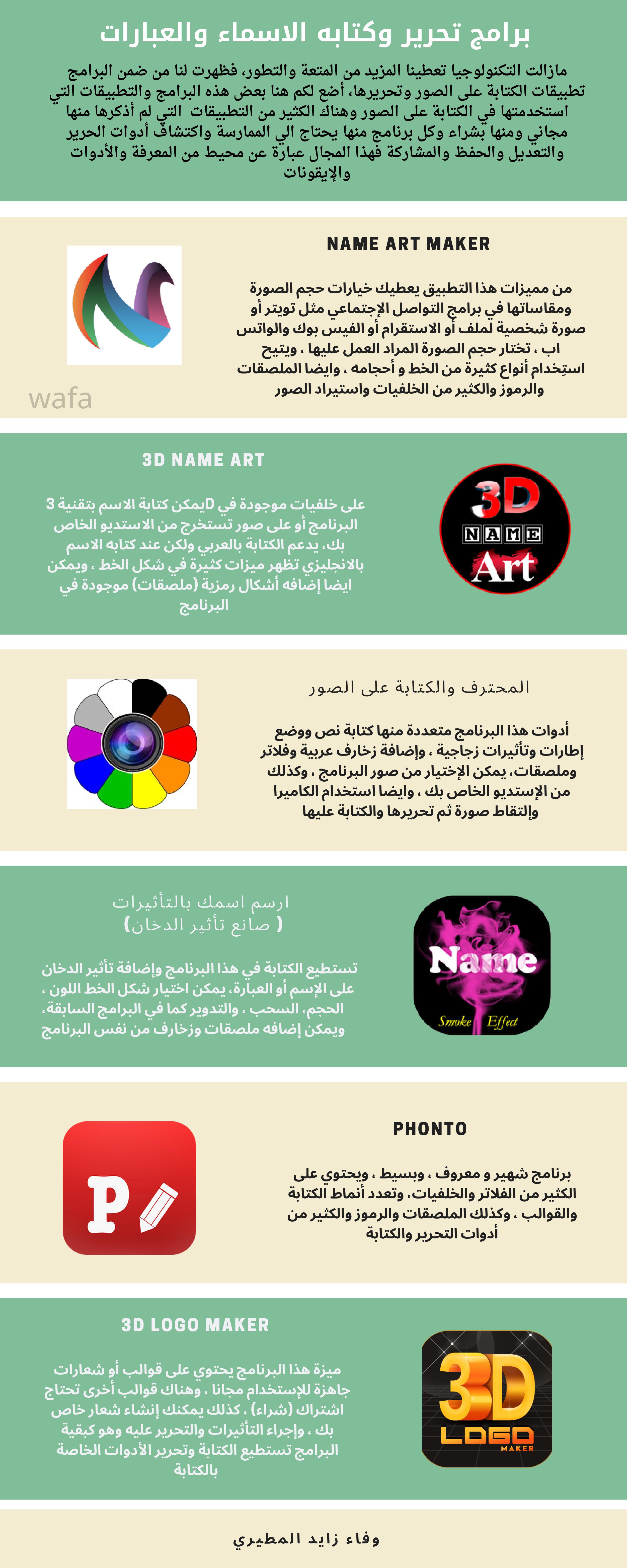 انفوجرافيك يعرض بعض التطبيقات التي تخص كتابة وتحرير الأسماء والعبارات وشرح مبسط عنها. وفاء زايد المطيري